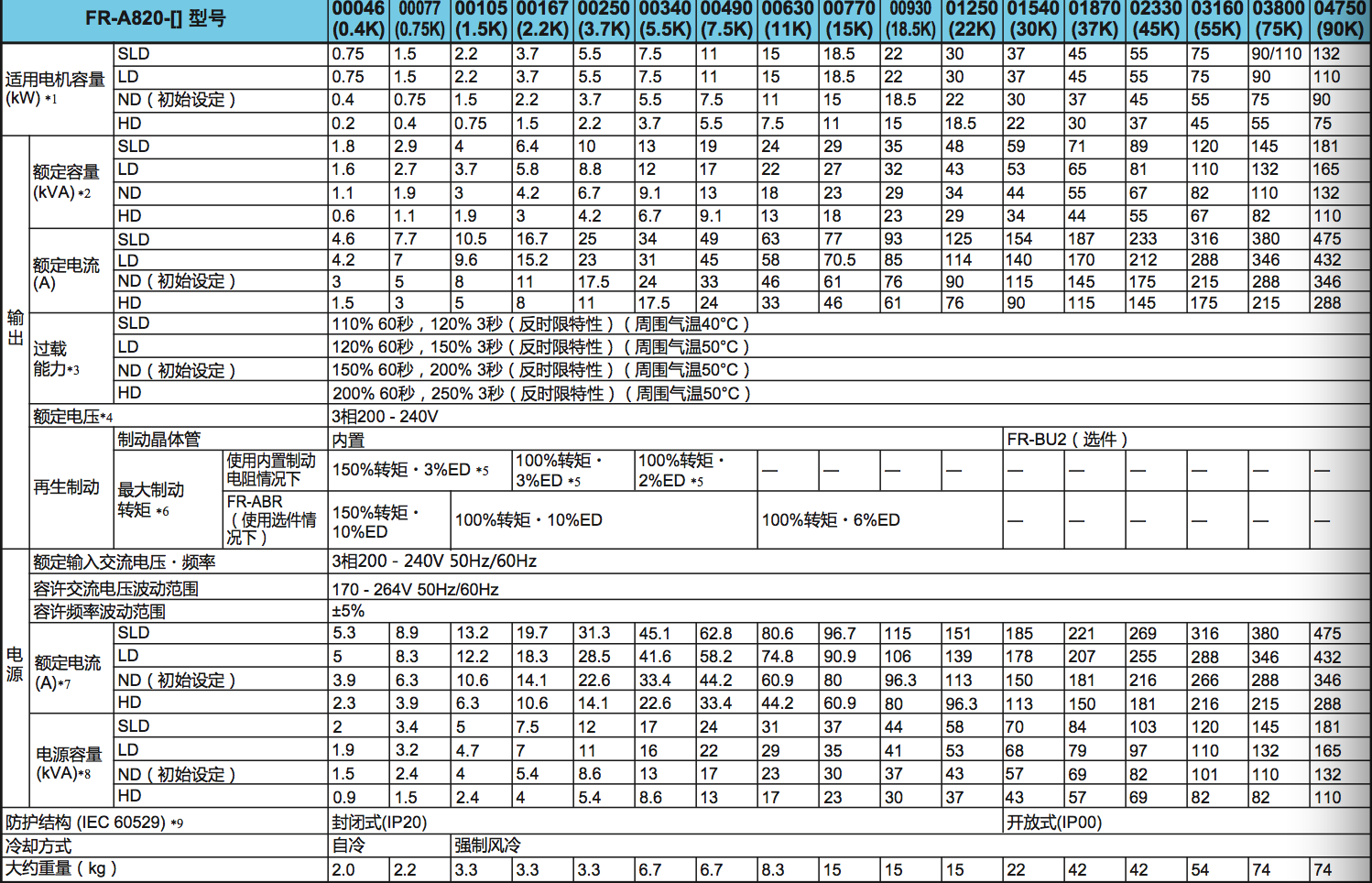 三菱变频器A800是三菱刚推出的新产品,全面代替三菱变频器A700系列,下面给大家列出一些三菱变频器A800的具体规格